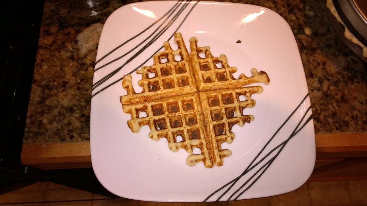 First waffle Published March 20, 2014 at 3072 × 1728 in Waffle Success! New Kitchen Gadgets and New Meals ← Previous Next → Here is the first waffle. Turns out I needed more batter