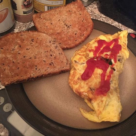 On the road to 165! Starting at 182.8 and #macros are 200c 55f 175p #timetogrind. Staring it off with a 4 #egg, #mushroom and #zucchini #omlette. With #toast and #Heinz. #breakfast #deadlift fuel! Posted on August 15, 2016 by jmallit from Instagram: http://ift.tt/2bbyie2
